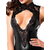 The tight-fitting, sleeveless jumpsuit Orgia from Noir is made out of beautiful black powerwet look. The top part of the jumpsuit is made out of delicate lace. It is soft and stretchy for a skin-tight but comfortable fit. There is a large cut-out over the cleavage area. There is also a large cut-out at the back. The lace halterneck choker has a button fastener.