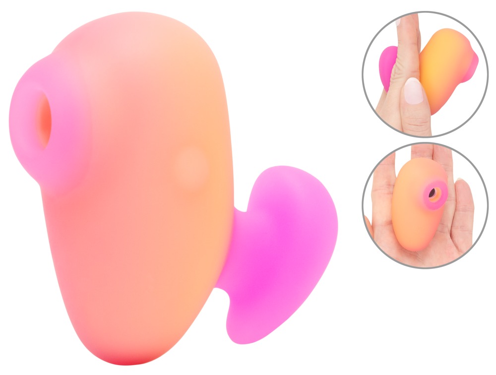 Kleiner kompakter Pulsator Kiss von ROMP mit Pleasure Air Technologie. Pulsierende Luftschwingungen stimulieren in 3 Intensitäten die Klitoris völlig berührungslos – ohne Gewöhnungseffekte oder das Gefühl einer Überreizung. Dabei liegt der ergonomisch designte Pulsator mit seinem raffinierten 2-Finger-Griff besonders gut in der Hand. Das hochwertige Silikon fühlt sich seidig weich an und schmeichelt jedem Lustpunkt. So eignet er sich auch perfekt für Erkundungen am ganzen Körper – beim Spiel allein oder zu zweit – zuhause oder unterwegs. Auch in Bad und Dusche, denn der Pulsator Kiss ist wasserdicht.
