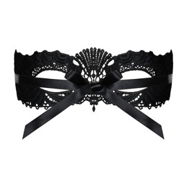 Elegant sort øjenmaske A700 fra Obsessive lavet af fine, bløde guipureblonder. Med silkebløde satinbånd til at binde med - kan justeres, så den passer til alle hovedstørrelser.