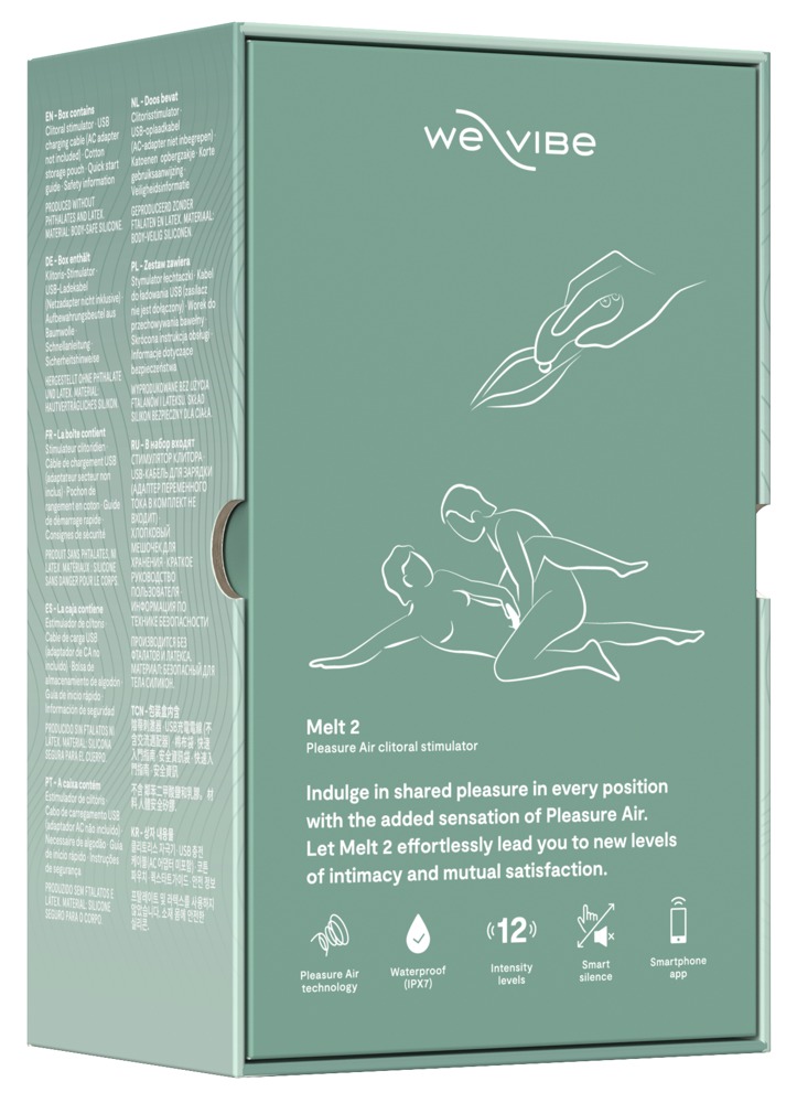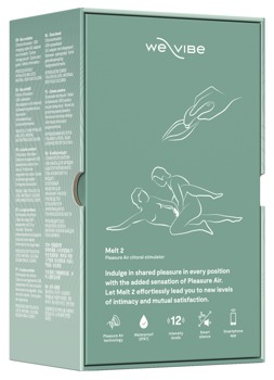 Melt 2 overrasker nu ikke kun med 12 intensiteter fra Pleasure Air-teknologien, men også med 6 separat styrbare sugeindstillinger. Enkelt og helt intuitivt med et tryk på en knap! Den stille og diskrete Melt 2 starter først ved hudkontakt takket være den batteribesparende Smart Silence-teknologi. Med We-Vibe-appen på din smartphone kan de pulserende luftvibrationer også nemt styres og kombineres. Også af partneren – selv over større afstande.