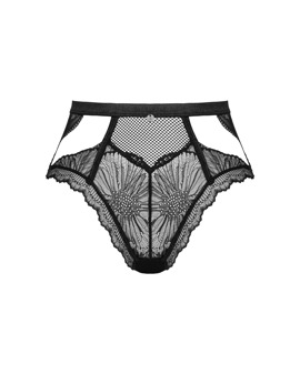 Slip taille haute Mibelia de Obsessive, à la coupe raffinée, en transparence noire avec une dentelle florale extravagante. Devant, sur les côtés, une découpe séduisante. Doux et élastique sur tout le pourtour pour un confort total.