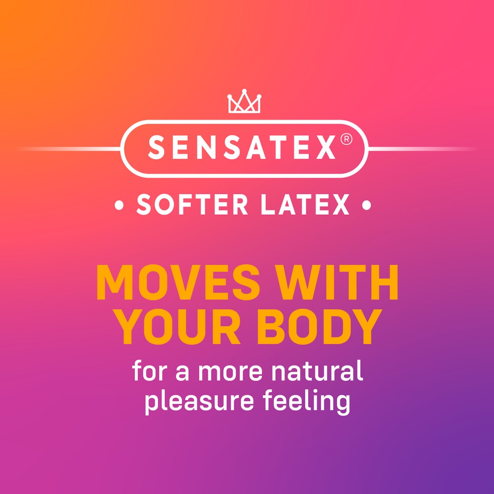 Chaque préservatif humidifié de forme profilée avec réservoir offre une assise confortable et sûre. Chacun est fabriqué en latex de caoutchouc naturel Sensatex ultra-doux pour une sensation de plaisir naturelle. Fabriqué de manière végétalienne et sans OGM.