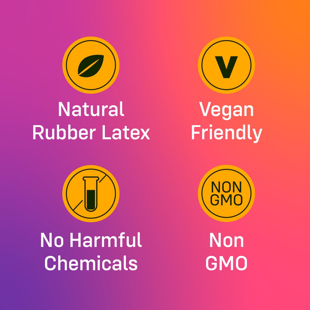 Cada preservativo hidratado tiene una forma contorneada con depósito para un ajuste cómodo y seguro. Todos están fabricados con látex de caucho natural Sensatex ultrasuave para una sensación de placer natural. Son veganos y no contienen OMG.