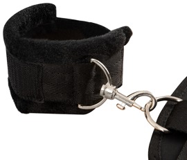 Kombineret bondage af Bad Kitty med hals/nakke, hænder og fødder. De er foret med blødt plys på indersiden og kan justeres med kraftige velcrolukninger for at sikre perfekt pasform. Fastholdelsesremmene til ankelmanchetterne kan justeres i længden. Håndjernene kan afmonteres fra halsmanchetten med karabinhager. Øjenmaske medfølger.