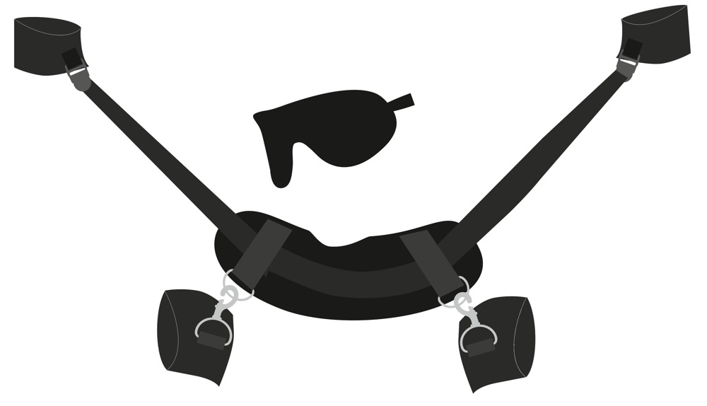 Наручники длиной 33 см каждый, наручники на лодыжках длиной 38 см, ограничительные ремни длиной 188 см каждый.