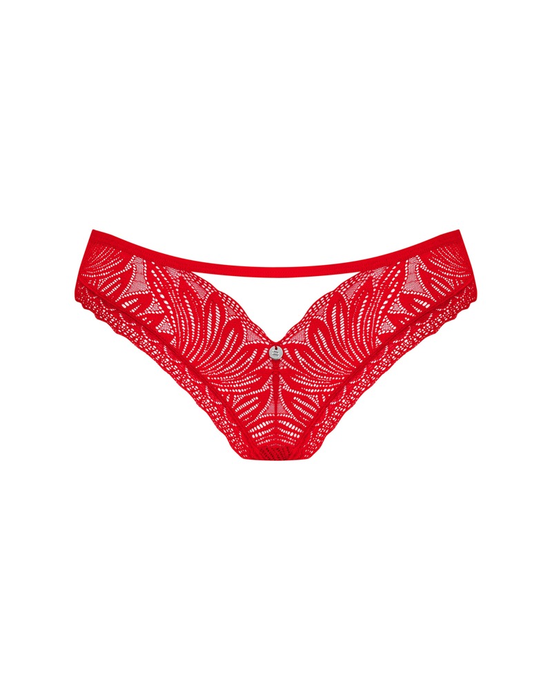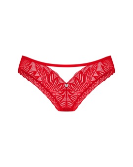 The elegant panties Chilisa by Obsessive are made entirely from soft floral lace and perfectly frame the female curves. There is a sophisticated cut-out at the front with a delicate ribbon that draws the eye to the crotch. The glittering heart detail at the bottom is an enchanting eye-catcher.
