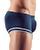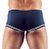 Her er den blå matrose-boxeren du har ventet på! Den fremhever manndommen på en maritim måte og med striper i hvitt og sølv, tiltrekker beina seg alle blikk. Mad hvit fôret glidelås foran. Myk mikrofiber: 92% polyester, 8% elastan.