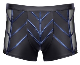 The emphasising pants from NEK are made out of cool black matte look material. They have racy, sewn-on stripes at the front and the sides. The stripes are made out of metallic blue matte look material. They also have transparent black net inserts at either side as well. The pants are soft and stretchy, and have a stretchy, fabric-covered waistband for a very comfortable fit.