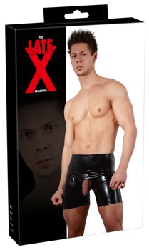 ... kan du överraska med denna! Svart latexkalsong med öppning till penis och pung (diameter 4 cm, med förstärkt kant) som sätter hela prakten i fokus! Nu är du alltid redo!