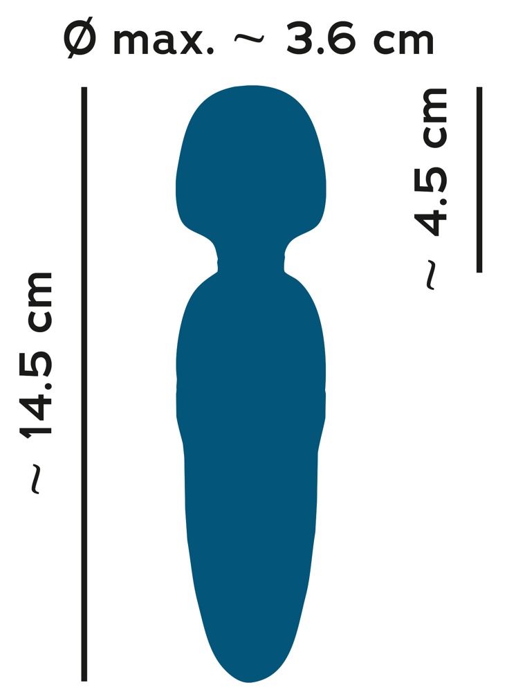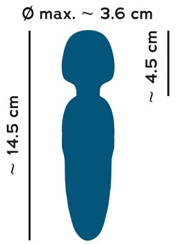 Total length 14.5 cm, massage head with neck 4.5 cm long, massage head Ø 3.6 cm.