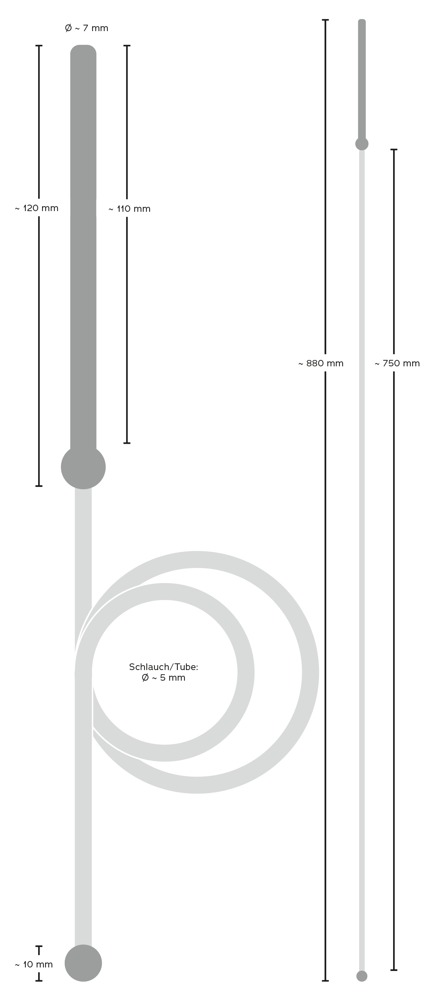 Schlauch 75 cm lang, Mundstück 1 cm lang.
