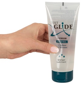 Med Just Glide blir det ett bra glid! Och långvarigt! Just Glide är vattenbaserat och 100% vegan samt olje-och fettfritt. Kan tvättas bort. Passar ihop med latexkondomer. Doft-och smakneutralt. Innehåller Panthenol som lugnar huden och har en regenererande effekt. Hyaloronsyra ger fukt och skapar en extra smidig konsistens.