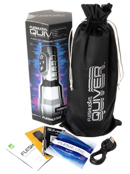 The slim, easy-to-hold, dual-motor Quiver masturbator from Fleshlight is in a stylish case. The case is in a cool chrome look. There is an extremely soft Superskin sleeve inside. The sleeve is in a realistic vulva/vagina look. The sleeve also has wonderfully stimulating textures inside and the masturbator itself has powerful vibrations – all this will pleasure the entire penis in a deeply satisfying way.