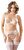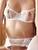 Delikat sett i hvit, brodert netting (mesh) kombinert med stretchsateng og små pyntesnøringer. Bøyle-BH med slissede skåler og justerbare skulderstropper. Hofteholder med justerbare strømpestropper og hektelukking bak. Dertil passende streng med åpent skritt. BH og hofteholder: 50% polyester, 40% polyamid, 10% elastan. Streng: 100% polyester.