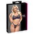 Biustonosz na fiszbinach i stringi w czarnym komplecie od Cottelli LINGERIE. Miseczki i przód stringów wykonane z miękkiej, elastycznej koronki z ozdobnymi oczkami w srebrnym kolorze. Małe ozdobne sznurowanie między miseczkami na fiszbinach. Regulowane zapięcie na haftki z tyłu. Ramiączka są również regulowane dla idealnego dopasowania. Stringi Rio z wygodnym elastycznym pasem.
