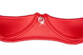 Sett i 3 deler, rødt som kjærligheten, med åpen BH, hofteholder og strengtruse. BH-en har bøyle, fôrede skåler og hektelukking bak. Stroppene kan justeres. Hofteholderen har lukking foran og fire justerbare strømpestropper. Den matchende strengtrusa er innbydende åpen i skrittet. 90% polyamid, 10% elastan.
