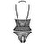 Este conjunto de Abierta Fina combina un corpiño de tirantes con unas braguitas sin entrepierna. Todo está hecho de fino y suave encaje elástico y decorado con rayas y detalles de terciopelo. El sujetador de corte más largo con copas de aros ligeramente acolchadas realza el busto y lo sitúa directamente en el campo de visión. Un pequeño volante favorece la cintura. La cremallera plateada de la parte delantera facilita su colocación. Las cadenas del escote y el collar son desmontables del corpiño. Los tirantes del escote y los tirantes de terciopelo son ajustables. El slip de encaje, ingeniosamente diseñado con bandas elásticas en la parte delantera, seduce con su entrepierna abierta y una estimulante cadena en la entrepierna que también se puede quitar.