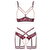 Excitante conjunto de Abierta Fina con sujetador sin busto y braguita de tirantes sin entrepierna. Fino encaje de color rojo oscuro adornado seductoramente con cintas de terciopelo y accesorios de color oro rosa. Suave y elástico en todo el cuerpo para una mayor comodidad. Cadenas de bisutería enmarcan los pechos al descubierto, 3 cadenas desmontables en la entrepierna completamente abierta estimulan con cada movimiento. Los tirantes del sujetador y el cierre de gancho de la espalda se pueden ajustar. Braguita de tirantes con cinturilla de terciopelo a la altura de la cintura. Los tirantes de terciopelo con doble tira en el muslo son ajustables.