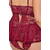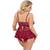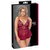 Conjunto de picardías y braguita sin entrepierna de Cottelli CURVES. De elegante encaje rojo oscuro, suave y elástico en todo el contorno para un gran confort. Seductoramente decorado con cintas elásticas de terciopelo y accesorios de color oro rosa. Top ajustado con colgante de corazón entre las suaves copas. Cierre de gancho ajustable en la espalda. Los tirantes también se pueden ajustar. Falda corta acampanada con sexy abertura trasera. Las braguitas de encaje a juego seducen con su entrepierna abierta.