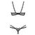 Åpent svart sett Nutris fra Obsessive med bøyle-BH og åpen strengtruse. Alt i edel, myk stretchblonde. Bøyle-BHen gir perfekt støtte til bysten. Pynteelement mellom skålene. Justerbare skulderstropper og hektelukking bak. Strengtruse i blonde med dristig fransk åpning i skrittet.