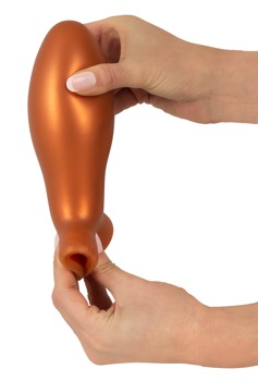 The XL butt plug is made out of seamless, non-porous Liquid Silicone. It is pleasantly firm but also wonderfully flexible. The extremely soft surface adapts perfectly to the anatomy and slides into the anal pleasure canal almost on its own.