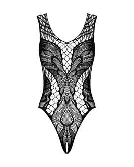 Body negro sin entrepierna B138 de Obsessive en diferentes estructuras de malla y con un aspecto entretejido único. Suave y elástico en todo el cuerpo para mayor comodidad. Corte ajustado y gran abertura en la espalda. Seductoramente abierto en la entrepierna.