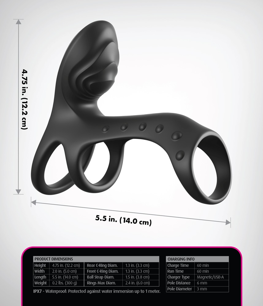 Dank des weichen, elastischen Silikons lassen sich Manschette und Ringe mühelos anlegen und passen sich perfekt an. Die hohe Flexibilität gewährleistet, dass die kraftvollen Doppel-Vibrationen bei jeder Bewegung intensiv erlebt werden. Maximaler Komfort und Genuss!