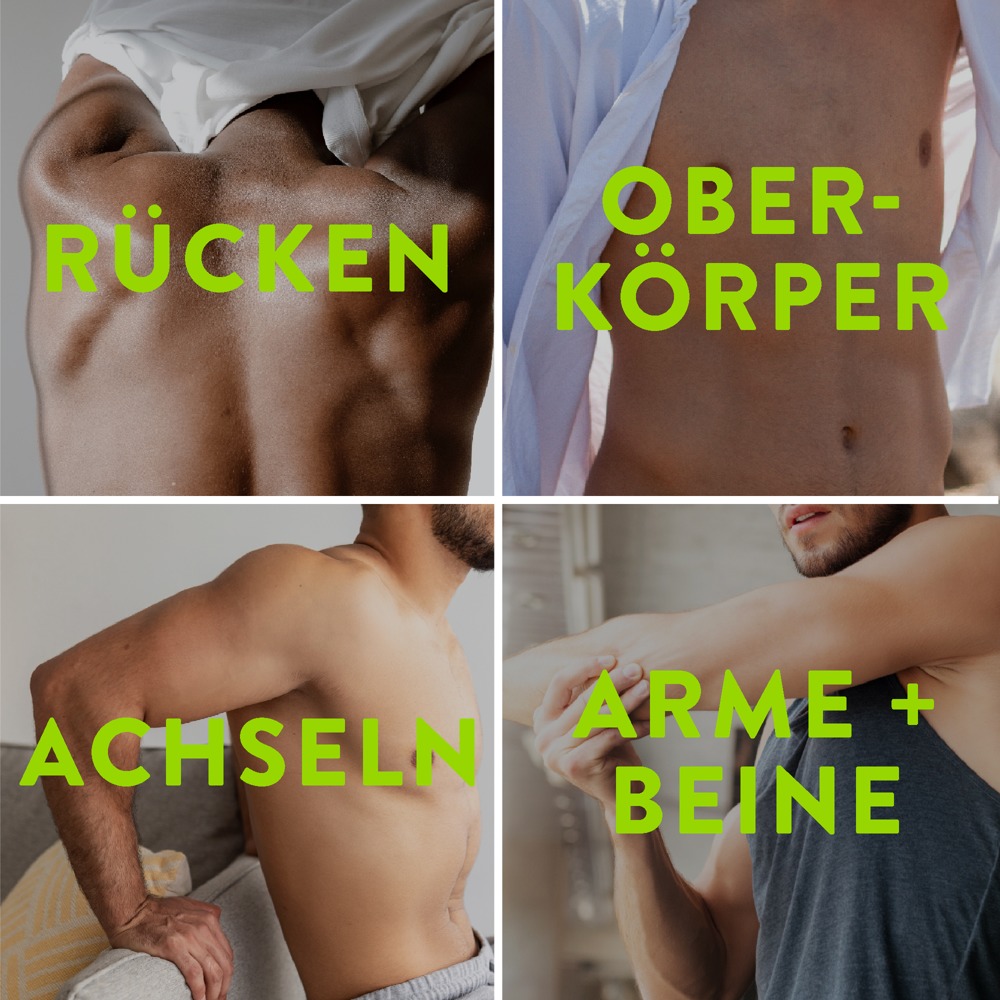 Nicht geeignet für Kopf, Gesicht, Augen, Nase, Ohren, Anal- oder Genitialbereich sowie Brustwarzen.