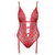 Seductive suspender body by kissable completely made of fine red lace with gold-coloured details. Soft and stretchy all around for maximum comfort. Plunging neckline to the waist at the front, the 3 connecting straps are decorated with little bows and glittering stones in the middle. The back has a two-piece look (bra & suspender briefs). Small hook closure in the back. The straps and suspenders are adjustable to fit.