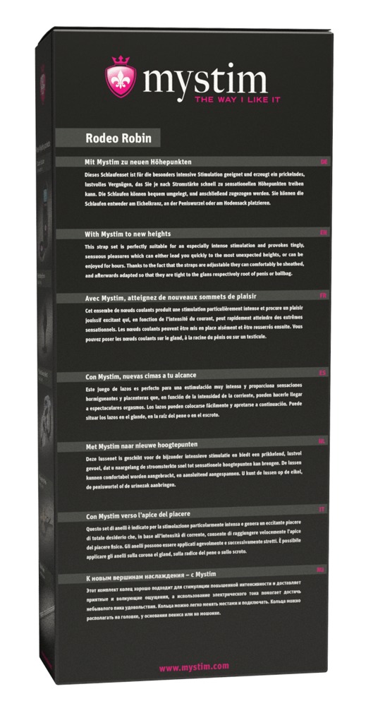Ten zestaw pętli nadaje się do szczególnie intensywnej stymulacji i wywołuje mrowienie, lubieżną przyjemność, która może szybko doprowadzić do sensacyjnych kulminacji w zależności od natężenia prądu. Pętle można wygodnie złożyć, a następnie dokręcić. Możesz umieścić pętle albo na żołędziach, u podstawy penisa lub w mosznie, ale zawsze należy upewnić się, że pętla podłączona do czarnego kabla jest najbliżej ciała. Oznacza to, że gdy pętle są umieszczone na żołędziach i korzeniach penisa, pierwszy jest podłączony do czerwonego kabla, a drugi do czarnego kabla: w ten sposób stymulacja jest jeszcze bardziej intensywna. Dołączone do dostawy: