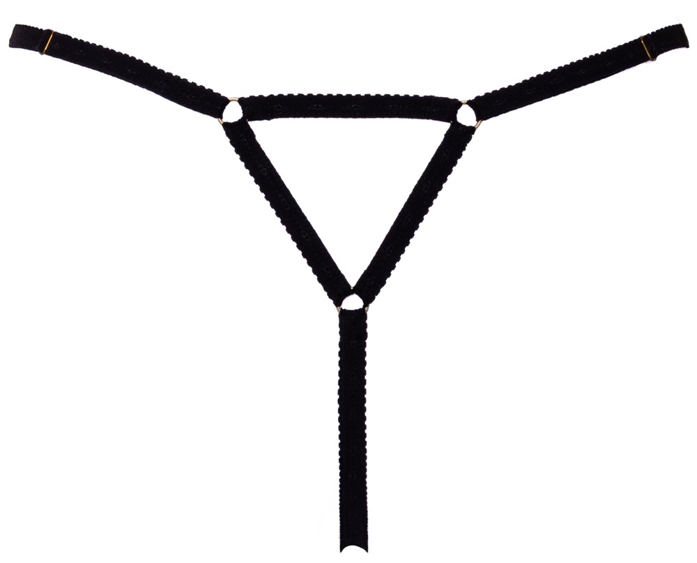 The glamorous, black, crotchless string from Cottelli LINGERIE is made out of very stretchy straps and has a triangle-shaped cut-out at the back. It has elaborate flowers at the front that are decorated with sparkly rhinestones. The waistband can be adjusted to fit.