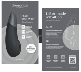 L'ENHANCE ergonomique et maniable de Womanizer enthousiasme avec la nouvelle combinaison unique de la technologie Pleasure Air et de la vibration We-Vibe ultra puissante. Les ondes de pression pulsées gâtent le clitoris sans le toucher, tandis que les vibrations profondes et puissantes se répandent sur toute la vulve. Le point culminant arrive rapidement et de manière fiable - des orgasmes pour tous !