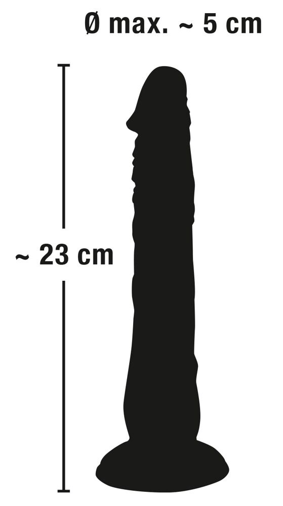Hudfärgad dildo med stort ollon, utpräglad ådring och sugfot. Längd: 18 cm, kan föras in ca. 16 cm, Ø 2,3-2,8 cm. Material: PVC.