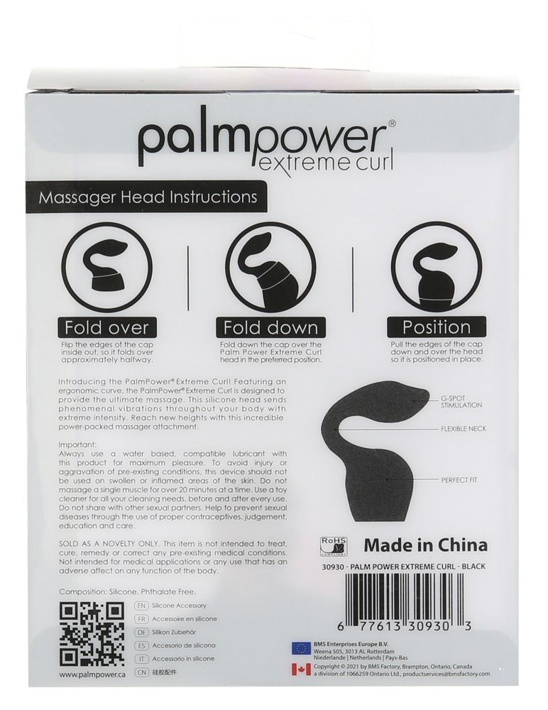 Den flexibla silikonpåsatsen extreme curl från palmpower sätts på massagestaven palmpower extreme. Kombinationen av massageapparatens sensationella kraft och stimulationsdesignen ger en ultimativ G-punktsmassage.