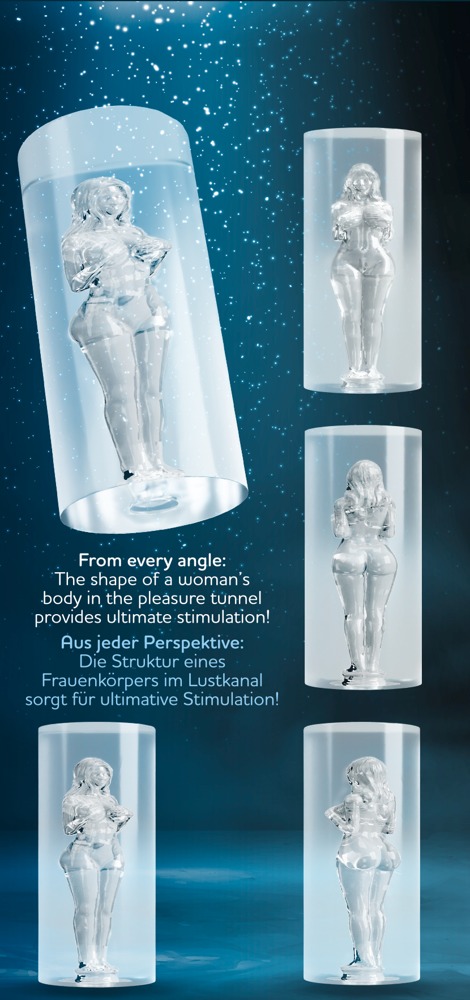 Masturbador transparente con forma de túnel femenino de STROKER con una artística silueta femenina en 3D como estructura interior. Por fuera se ve elegante desde todos los ángulos y por dentro mima el pene con un masaje intensivo durante una paja. Cerrado por detrás para un efecto de succión adicional. El material elástico, transparente y suave es muy elástico y flexible. Se adapta rápidamente a la temperatura corporal y se adapta perfectamente al pene y a los movimientos. El masturbador antideslizante se adapta perfectamente a la mano y se puede apretar fácilmente para obtener sensaciones de agarre.