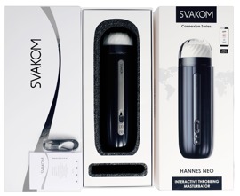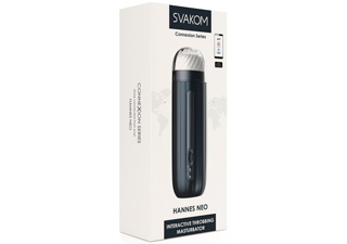 Volautomatische pulserende masturbator Hannes Neo van SVAKOM met afneembare stimulatie gestructureerde sleeve voor intensieve penismassage. Met diep kloppende pulserende stuwfunctie in 5 intensiteiten en bovendien een warmtefunctie, die bijdraagt aan een bijzonder realistische ervaring. Allemaal handig te bedienen met een druk op de knop/schuif (traploze snelheid) direct op het speelgoed of via de FeelConnect 3 app op je smartphone met 3 hoofdfuncties: Controle op lange afstand (altijd en overal ter wereld), verbinding met interactieve 2D-video's en interactieve webcamfunctie.