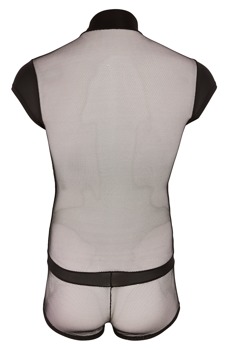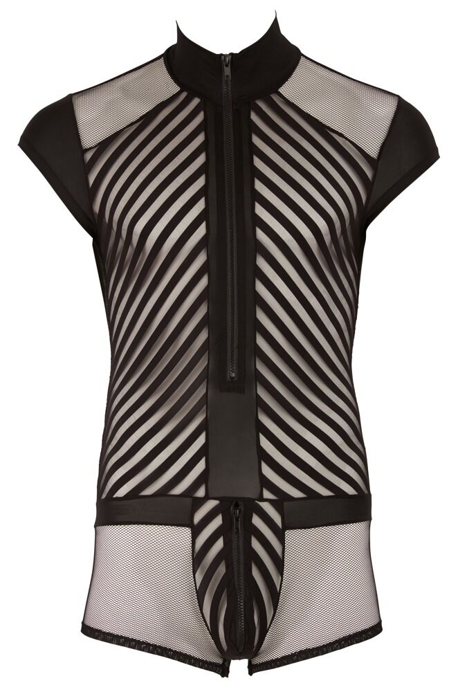 Kortermet kortbody som garanterer hete blikk! Stoffmiks av to typer netting og trendy striper tillater beundrende blikk på det om befinner seg under. Glidelås foran som er fôret over gylfen. Svart. 90% polyamid, 10% elastan.