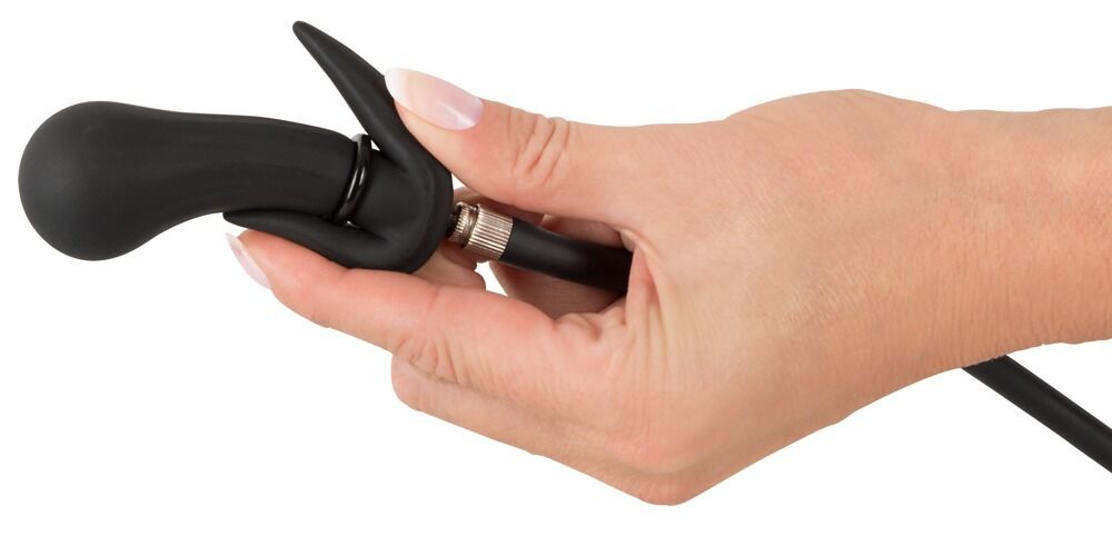 Uppblåsbar plugg med pumpboll och ventil. Med avtagbar slang. Total längd: 65 cm, pluggens totala längd: 8 cm, införingsdjup: 6 cm, bredd: 3 cm. Silikon, PUR.