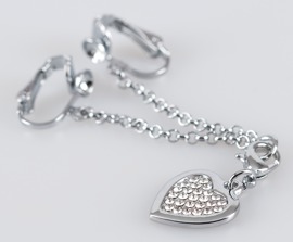 Collar íntimo de plata con colgante de corazón de strass y broches labiales.
