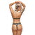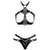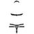 Conjunto de arnés ZADO de cuero de búfalo negro con detalles metálicos plateados. Consta de un arnés de pecho sin busto (copa B/C) y un tanga con tiras. Ambas partes se pueden ajustar de varias maneras con cierres de hebilla para un ajuste perfecto y cómodo.