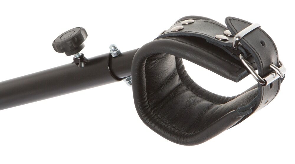 Spredestangen med læderbøjler fra ZADO fastgør sub med spredte arme på hænderne eller med spredte ben på fødderne. De blødt polstrede håndjern er solidt fastgjort til den robuste metalstang og kan justeres med spændebeslag. Stangen kan justeres fra 65 cm til 120 cm. Opbevaringspose medfølger.