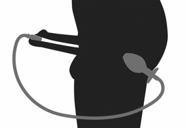 Tung, hul analplugg som er forbundet med den åpne penispluggen med en slange.