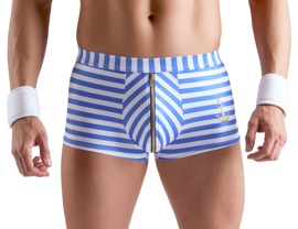 Tight, emphasising pants from Svenjoyment with maritime blue and white stripes. 2 white cuffs are included. There is a zip over the pouch and embroidery in an authentic anchor shape. They are soft and stretchy for a very comfortable fit. The cuffs have decorative press studs on them.