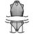 Ensemble excitant de Cottelli BONDAGE avec top, slip à jarretelles et 6 bracelets souples. Mélange élégant de matériaux en powernet transparent et aspect mat avec des accessoires argentés. Doux et élastique sur tout le pourtour pour un grand confort. Top avec boutons-pression à ouvrir au-dessus des seins. Col montant avec 2 boutons-pression dans la nuque. Slip à la taille avec jarretelles fixes et sangles de cuisses réglables. Fermeture par boutons-pression à l'entrejambe jusqu'au-dessus des fesses. Les anneaux latéraux du haut et du slip permettent de passer facilement les chevilles souples. Les manchettes souples s'enfilent et s'enlèvent rapidement grâce à leurs fermetures velcro réglables.