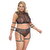 Läckert set från Cottelli BONDAGE bestående av topp, strumphållartrosa och 6 mjuka armbojor. Elegant materialmix av genomskinligt powernet och mattlook i remdesign med silverfärgade accessoirer. Mjuk och elastisk för maximal komfort. Toppen har tryckknappar över brösten. Ståkrage med två tryckknappar i nacken. Midjehög trosa med fastsydda strumphållare och justerbara lårremmar. Tryckknappar i grenen som går till rumpan. De mjuka bojorna kan enkelt dras igenom genom sidoringarna på toppen och trosan. Bojorna har justerbara kardborrband.