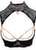 Öppen BH med lätt vadderade bygelkupor i en ovanlig design. Snygga spetsinsatser går samman till ett stort halsband via axelbanden. De roséguldfärgade detaljerna betonar urringningen på bästa sätt och stimulerar vaginan vid varje rörelse. Alla detaljer kan tas bort med en liten karbinhake. Strumphållarstringen är öppen i grenen och har 4 strumphållare.