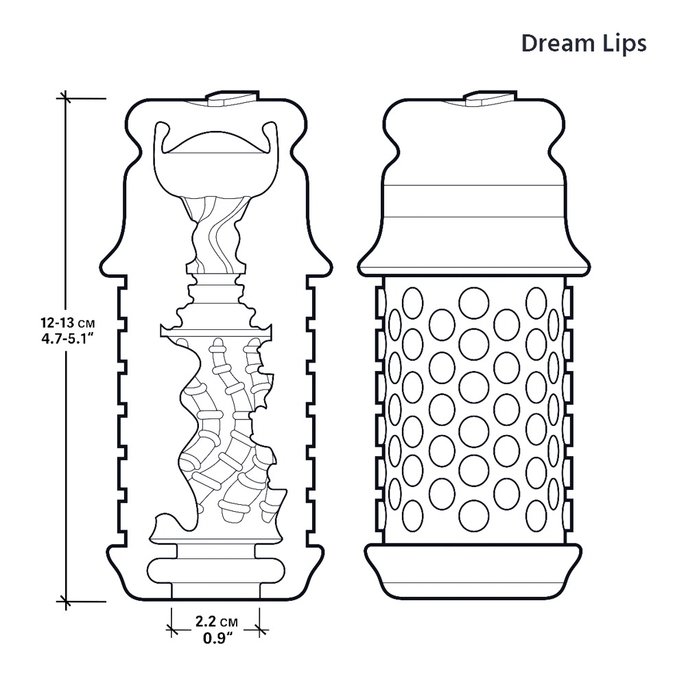 Dream Sleeve Lips : 12 cm-13 cm de long, Ø intérieur 2,2 cm. TPE (POLYÉTHYLÈNE TÉRÉPHTALATE).