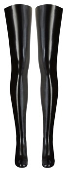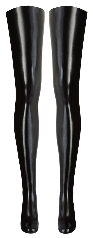 Thigh-high stockings made out of shiny latex. They can be worn with various outfits, are very comfortable and extremely arousing.