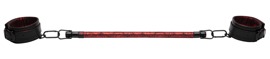 De Sweet Anticipation Spreader Bar met Boeien uit Fifty Shades of Grey biedt lustvolle fixaties voor handen of voeten. De hand- of voetboeien worden met clipkarabijnhaken aan de D-ringen aan het uiteinde van de stevige stang gehaakt, die is omhuld met zacht geweven materiaal in een rozendessin. De comfortabel gevoerde manchetten kunnen aan beide zijden worden gedragen: Een zijde in zwart lederlook, andere zijde met satijn in zwart/rood rozendessin. De omtrek van elk kan worden aangepast met een gespsluiting.
