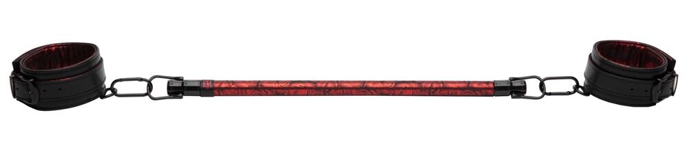 Srpikestang med avtagbare lenker fra Sweet Anticipation Spreader Bar fra Fifty Shades of Grey, som muliggjør lystbetont fiksering av hender eller føtter. Den stabile stanga er omviklet av mykt, rosemønstret vevstoff, og stanga har D-ringer hvor hånd- eller fotlenker festes med klipskarabiner. De polstrede mansjettene kan brukes på begge sider, den ene sida er i svart jukselær, den andre i rosemønstret, svart/rødt satengstoff, og kan justeres i omfang med spenner.